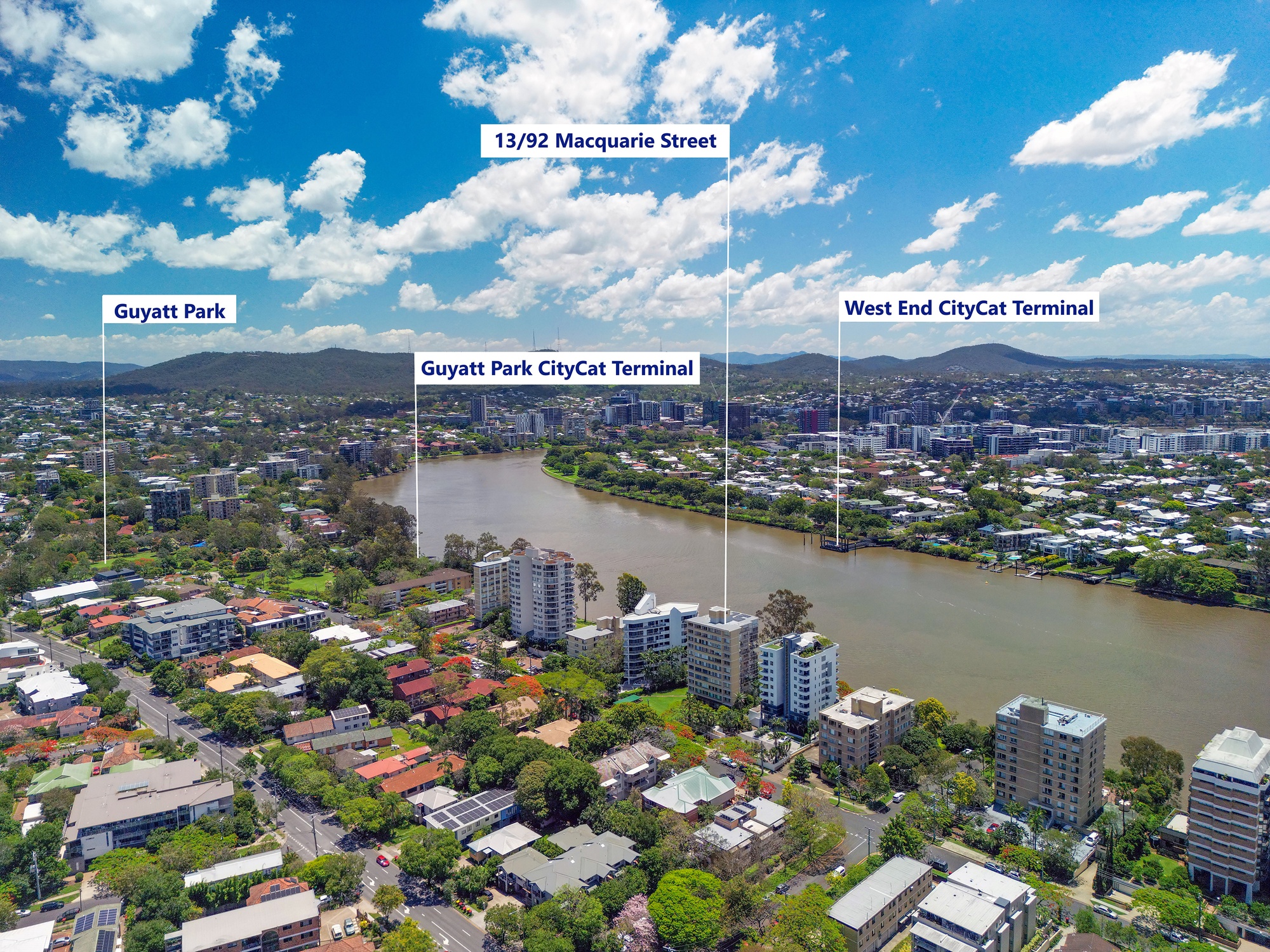 • Walking distance to Guyatt Park Ferry Terminal, UQ &St Lucia Bowling Club