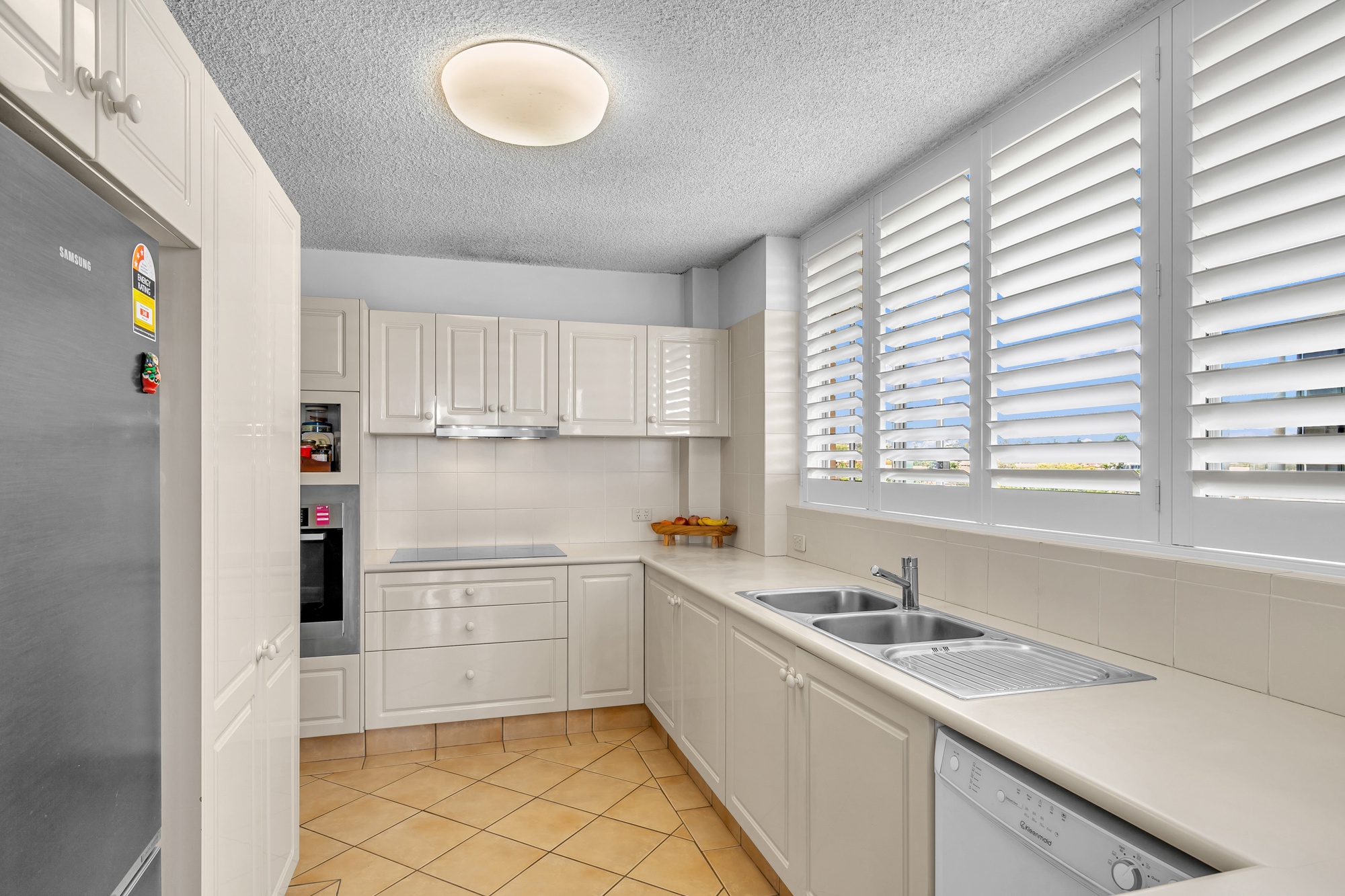 • Kitchen incorporates high-end appliances including a dishwasher, Miele oven & Bosch ceramic cooktop, fit with copious built-in cabinetry, bench space & dual sinks